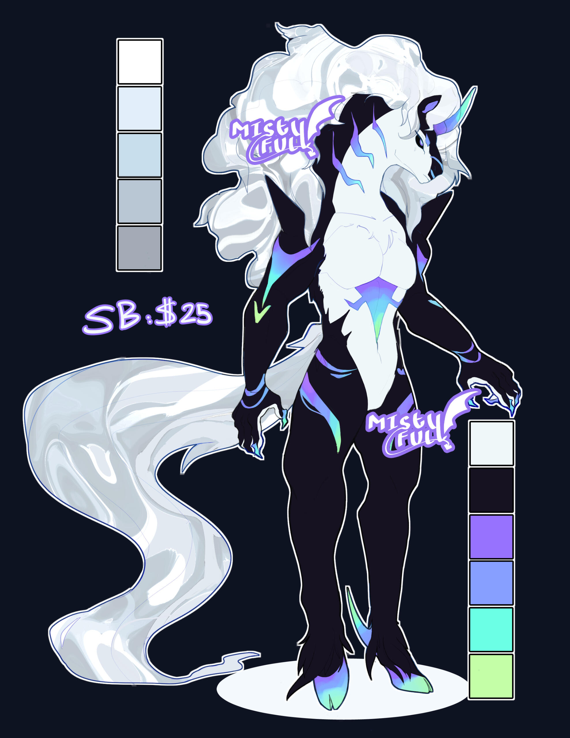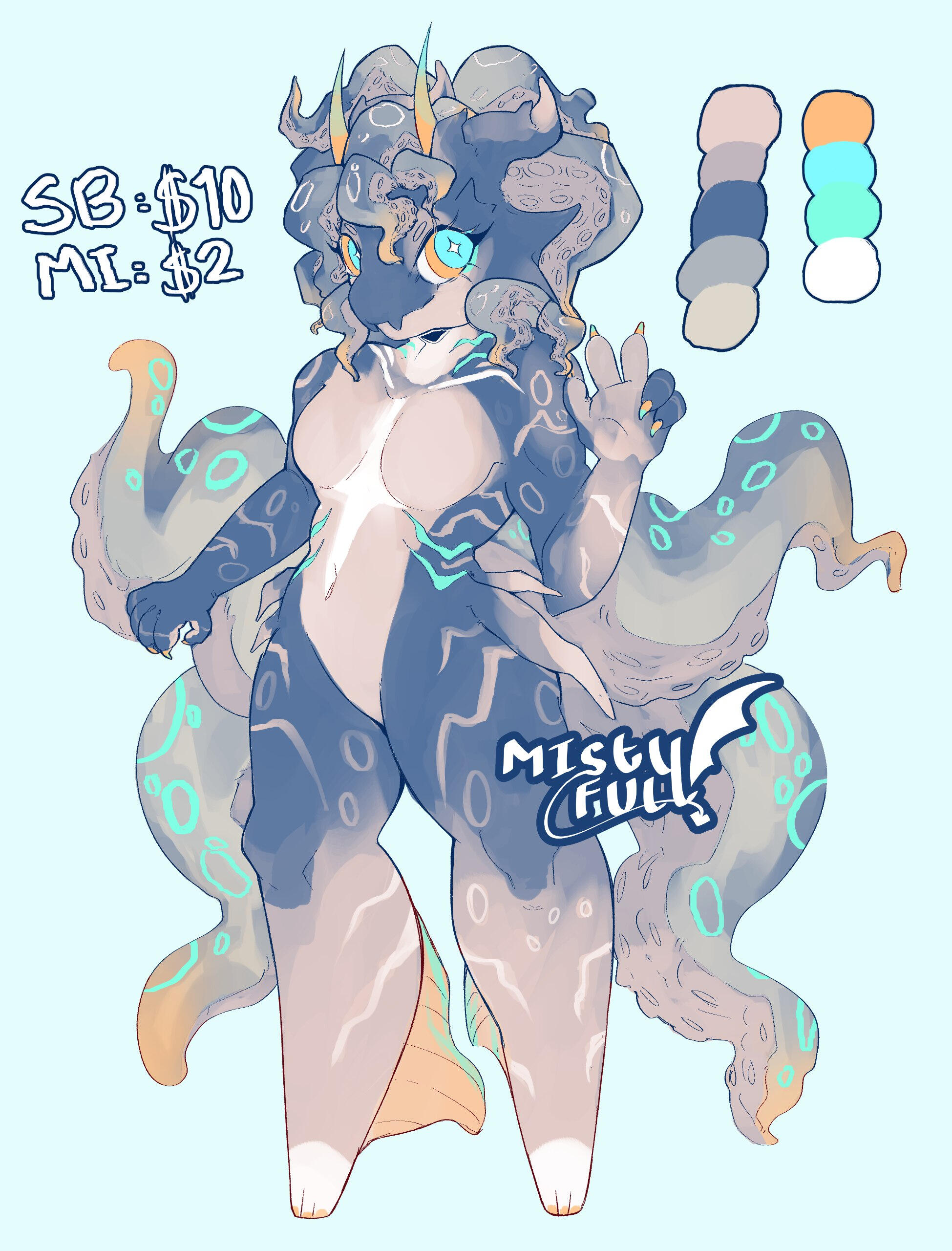 Hello, my name is Misty, and I'm a self-taught artist! I have a passion for character design, concept art, and illustration. I particularly enjoy creating original characters and crafting unique designs. Please feel free to peruse my commission information, and if you're interested, don't hesitate to contact me via direct message!